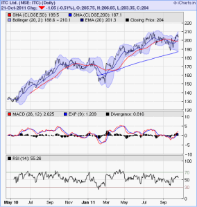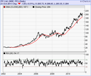 There is always a bull market somewhere. Take a look at how ITC has behaved over the past 18 months (charts via icharts.in). It seems it will take more than a few ‘puffs’ to get it past the 210 line. So may not be the local nadir. But when one looks at the past 10 years chart, this looks a good time indeed. Whats the point in timing over such fantastically run companies anyways!
