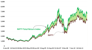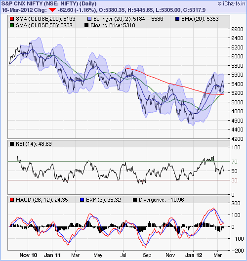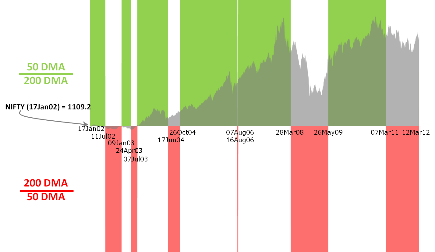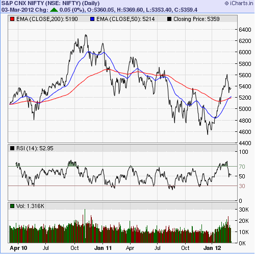 In my previous post I had talked about the high negative correlation between the VIX and its underlying, the NIFTY. The chart on the right shows the actual movements of the NIFTY compared with the corresponding VIX moves. The period covering Mar’09 to Sep’10 marked a very rapid increase in the market (NIFTY rose from 3000 levels to 5,500). Since the VIX indicates volatility, the period at the start of this phase saw the most rapid increase in the NIFTY (in percentage terms) and that is why the VIX readings were above 40% during this time. The period from Sep’10 till date however have seen the market mostly move in a sideways direction. It started off around 5,500 in Sep’10 and is now at the 5,300 levels. Accordingly, if you look at the VIX, it has also remained mostly flat. Now, the big thought in my mind is this: we hear mostly bullish noises these days. Golden Cross; correction within an overall bullish trajectory etc. So, if the negative correlation were to hold and the NIFTY were to move up from now, it is logical to expect the fear (i.e. VIX) to come down from its current levels (~24%) t0 something like a 15% (?) or so. Since the start of this chart (chosen since that is the date range for which NSE publishes its VIX values) marked the markets coming out of a rather exceptional period in its history (global banking sector meltdown), VIX values > 40% may be really rare to come by again in the near future. I have nevertheless plotted a dotted red line on the VIX portion of the chart which shows the median level of the VIX range. In the event that the VIX ‘reversion to the mean’ becomes a reality in the months to come then I guess we should brace ourselves for another secular fall in the NIFTY. If you take the economic events near the starting period of this chart to be exceptional, and ignore the corresponding VIX values as outliers, then the new median will be quite close to where the VIX is today (22% – 24%) in which case there is definitely a case for it to fall down to late teens/earlier twenties. As you can guess I am rooting for a rise in the NIFTY and trying to twist my data interpretation to fit that notion!! 🙂