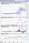 1. Jain Irrigation Systems: I know that this seems to be a fairly valued stock with it’s 1 yr forward P/E running at 30 and that it’s market cap is in the region of INR 8,700 crores (= USD 1.9 billion) on an expected FY11 sales figure of INR 4,200 crores (= USD 933 million). The stock has recently seen a 1 yr forward P/E band of 33-34 as well, so on that logic there could be some steam there. The company has compounded it’s revenues at a crazy 40% CAGR over the past 5 years using a mix of organic (!) and inorganic methods. So, the market obviously feels that this kind of growth will continue into the future (say 3 – 5 more years) and that’s why a P/E of <40 appears justified. But I am not sure if net earnings growth will also grow at the same clip. Currently, around 6% of the money that the company earns goes into servicing its debt. But I picked up a (moderate sized) position today as I feel that there is a short term 10% – 15% opportunity here. Another important point for me is that this company is from my home district, Jalgaon so I do feel my agrarian roots rising up as I sow this small packet of capital here. But really, the company is cool, having delivered world class drip irrigation methods to a country so sapped of water. It is now pioneering the concept of using drip techniques for paddy – the killer crop when it comes to water requirements. If that clicks, then it will be awesome for the country. From the chart above, I guess 1050-1075 seems to be a support level and given the Lower Bollinger Band touch, a negative plunge of the MACD and a code red, buy signal from the RSI, I will venture out here. A mental stop loss of 1000 is in place. 1000 also appears to be the next support? Lets see.